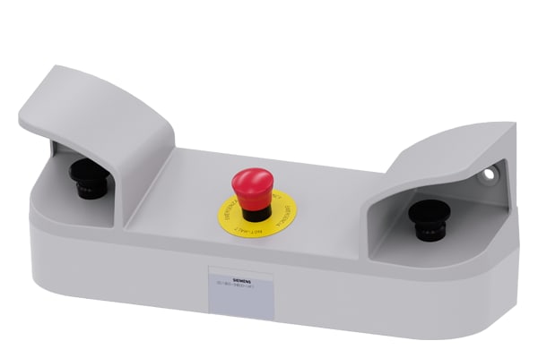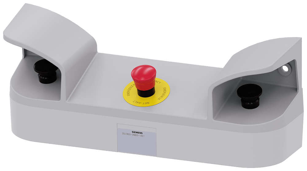 pulpito di comando a due mani per dispositivi di comando, 22 mm, rotondi, materiale della pulsantiera plastica, parte superiore della pulsantiera grigia, 3 fori per punti di comando, 8 punti di rottura nominali aggiuntivi per dispositivi di comando da 22mm, 2 pulsanti a fungo neri 40 mm, 2x 1NO+1NC, morsetti a vite, 1x ARRESTO DI EMERGENZA rosso, 40 mm, 2NC, morsetti a vite, fissaggio frontale, con passacavi per pressacavi metrici Pulpito di comando bimanuale SIRIUS ACT per macchine e impianti con potenziale di pericolo più alto (ad es. per una sicurezza elevata di presse, punzonatrici) secondo EN 574. Siemens offre, sotto il nome commerciale SIRIUS ACT, un portfolio esclusivo di dispositivi di comando e segnalazione con omologazioni di prodotto per il mercato mondiale in tre moderne serie di design in robusto metallo puro e plastica pregiata.Linnovativo concetto di innesto a scatto semplifica talmente il montaggio che per eseguirlo basta una sola mano e non servono attrezzi speciali. Per i fori di montaggio sono sufficienti semplici fori non scanalati, essendo già integrata una protezione antirotazione al 100 %.Grazie al grado di protezione elevato i robusti apparecchi sono adatti allimpiego industriale e in ambiente esterno. È persino possibile la pulizia con getto ad alta pressione. Né polvere, né oli, né liscivia possono comprometterne il funzionamento affidabile.Oltre che con il cablaggio standard, gli apparecchi possono essere collegati al controllore anche tramite PROFINET, AS-Interface oppure IO-Link. Potete così ridurre il vostro onere di cablaggio, minimizzare le fonti di errore e ottenere maggiore flessibilità.Il configuratore online grafico supporta in modo confortevole la scelta e lordinazione di singoli apparecchi, pulsantiere e iscrizioni. È disponibile una documentazione completa (ad es. manuale, dati 3D, schema di collegamento). Esecuzioni fornibili: plastica/metallo, pulsantiera equipaggiabile/equipaggiata. SIRIUS ACT - Performance in Action nel comando e nella segnalazione. Semplici da montare, altamente performanti, semplicemente perfetti.