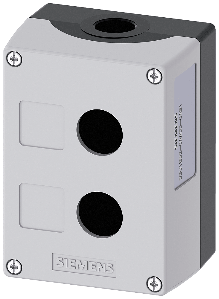 Pulsantiera per dispositivi di comando, 22 mm, rotondo, materiale della custodia metallo, parte superiore della custodia grigia, 2 punti di comando, senza equipaggiamento, approfondimento per etichetta, fissaggio sulla base di fondo, in alto e in basso rispettivamente 1xM20 Custodie SIRIUS ACT per il montaggio dei dispositivi di comando e segnalazione da 22,5 mm in caso di installazione spazialmente separata di unità di comando e quadri elettrici. Siemens offre, sotto il nome commerciale SIRIUS ACT, un portfolio esclusivo di dispositivi di comando e segnalazione con omologazioni di prodotto per il mercato mondiale in tre moderne serie di design in robusto metallo puro e plastica pregiata.Linnovativo concetto di innesto a scatto semplifica talmente il montaggio che per eseguirlo basta una sola mano e non servono attrezzi speciali. Per i fori di montaggio sono sufficienti semplici fori non scanalati, essendo già integrata una protezione antirotazione al 100 %.Grazie al grado di protezione elevato i robustiapparecchi sono adatti allimpiego industriale e in ambiente esterno. È persino possibile la pulizia con getto ad alta pressione. Né polvere, né oli, né liscivia possono comprometterne il funzionamento affidabile.Oltre che con il cablaggio standard, gli apparecchi possono essere collegati al controllore anche tramite PROFINET, AS-Interface oppure IO-Link. Potete così ridurre il vostro onere di cablaggio, minimizzare le fonti di errore e ottenere maggiore flessibilità.Il configuratore online grafico supporta in modo confortevole la scelta e lordinazione di singoli apparecchi, pulsantiere e iscrizioni. È disponibile una documentazione completa (ad es. manuale, dati 3D, schema di collegamento). Esecuzioni fornibili: giallo/grigio, plastica/metallo, 1-6 puntidi comando, pulsantiera equipaggiabile/equipaggiata, a scelta con collegamento AS-Interface. SIRIUS ACT - Performance in Action nel comando e nella segnalazione. Semplici da montare, altamente performanti, semplicemente perfetti.