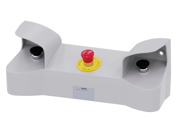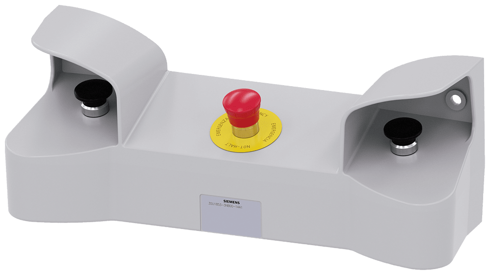 pulpito di comando a due mani per dispositivi di comando, 22 mm, rotondi, materiale della pulsantiera metallo, parte superiore della pulsantiera grigia, 3 punti di comando in metallo, equipaggiamento standard: 2 pulsanti a fungo neri 40 mm, 2x 1NO+1NC, morsetti a vite, 1x ARRESTO DI EMERGENZA rosso, 40 mm, 2NC, morsetti a vite Pulpito di comando bimanuale SIRIUS ACT per macchine e impianti con potenziale di pericolo più alto (ad es. per una sicurezza elevata di presse, punzonatrici) secondo EN 574. Siemens offre, sotto il nome commerciale SIRIUS ACT, un portfolio esclusivo di dispositivi di comando e segnalazione con omologazioni di prodotto per il mercato mondiale in tre moderne serie di design in robusto metallo puro e plastica pregiata.Linnovativo concetto di innesto a scatto semplifica talmente il montaggio che per eseguirlo basta una sola mano e non servono attrezzi speciali. Per i fori di montaggio sono sufficienti semplici fori non scanalati, essendo già integrata una protezione antirotazione al 100 %.Grazie al grado di protezione elevato i robusti apparecchi sono adatti allimpiego industriale e in ambiente esterno. È persino possibile la pulizia con getto ad alta pressione. Né polvere, né oli, né liscivia possono comprometterne il funzionamento affidabile.Oltre che con il cablaggio standard, gli apparecchi possono essere collegati al controllore anche tramite PROFINET, AS-Interface oppure IO-Link. Potete così ridurre il vostro onere di cablaggio, minimizzare le fonti di errore e ottenere maggioreflessibilità.Il configuratore online grafico supporta in modo confortevole la scelta e lordinazione di singoli apparecchi, pulsantiere e iscrizioni. È disponibile una documentazione completa (ad es. manuale, dati 3D, schema di collegamento). Esecuzioni fornibili: plastica/metallo, pulsantiera equipaggiabile/equipaggiata. SIRIUS ACT - Performance in Action nel comando e nella segnalazione. Semplici da montare, altamente performanti, semplicemente perfetti.