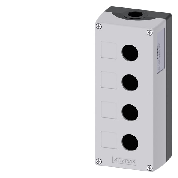Pulsantiera per dispositivi di comando, 22 mm, rotondo, materiale della custodia metallo, parte superiore della custodia grigia, 4 punti di comando, senza equipaggiamento, approfondimento per etichetta, fissaggio sulla base di fondo, in alto e in basso rispettivamente 1xM25 Custodie SIRIUS ACT per il montaggio dei dispositivi di comando e segnalazione da 22,5 mm in caso di installazione spazialmente separata di unità di comando e quadri elettrici. Siemens offre, sotto il nome commerciale SIRIUS ACT, un portfolio esclusivo di dispositivi di comando e segnalazione con omologazioni di prodotto per il mercato mondiale in tre moderne serie di design in robusto metallo puro e plastica pregiata.Linnovativo concetto di innesto a scatto semplifica talmente il montaggio che per eseguirlo basta una sola mano e non servono attrezzi speciali. Per i fori di montaggio sono sufficienti semplici fori non scanalati, essendo già integrata una protezione antirotazione al 100 %.Grazie al grado di protezione elevato i robustiapparecchi sono adatti allimpiego industriale e in ambiente esterno. È persino possibile la pulizia con getto ad alta pressione. Né polvere, né oli, né liscivia possono comprometterne il funzionamento affidabile.Oltre che con il cablaggio standard, gli apparecchi possono essere collegati al controllore anche tramite PROFINET, AS-Interface oppure IO-Link. Potete così ridurre il vostro onere di cablaggio, minimizzare le fonti di errore e ottenere maggiore flessibilità.Il configuratore online grafico supporta in modo confortevole la scelta e lordinazione di singoli apparecchi, pulsantiere e iscrizioni. È disponibile una documentazione completa (ad es. manuale, dati 3D, schema di collegamento). Esecuzioni fornibili: giallo/grigio, plastica/metallo, 1-6 puntidi comando, pulsantiera equipaggiabile/equipaggiata, a scelta con collegamento AS-Interface. SIRIUS ACT - Performance in Action nel comando e nella segnalazione. Semplici da montare, altamente performanti, semplicemente perfetti.