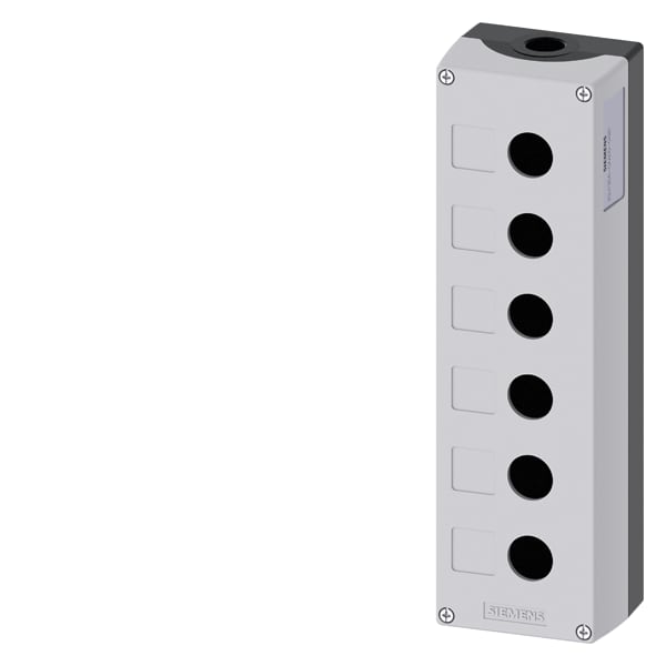 Pulsantiera per dispositivi di comando, 22 mm, rotondo, materiale della custodia metallo, parte superiore della custodia grigia, 6 punti di comando, senza equipaggiamento, approfondimento per etichetta, fissaggio sulla base di fondo, in alto e in basso rispettivamente 1xM25 Custodie SIRIUS ACT per il montaggio dei dispositivi di comando e segnalazione da 22,5 mm in caso di installazione spazialmente separata di unità di comando e quadri elettrici. Siemens offre, sotto il nome commerciale SIRIUS ACT, un portfolio esclusivo di dispositivi di comando e segnalazione con omologazioni di prodotto per il mercato mondiale in tre moderne serie di design in robusto metallo puro e plastica pregiata.Linnovativo concetto di innesto a scatto semplifica talmente il montaggio che per eseguirlo basta una sola mano e non servono attrezzi speciali. Per i fori di montaggio sono sufficienti semplici fori non scanalati, essendo già integrata una protezione antirotazione al 100 %.Grazie al grado di protezione elevato i robustiapparecchi sono adatti allimpiego industriale e in ambiente esterno. È persino possibile la pulizia con getto ad alta pressione. Né polvere, né oli, né liscivia possono comprometterne il funzionamento affidabile.Oltre che con il cablaggio standard, gli apparecchi possono essere collegati al controllore anche tramite PROFINET, AS-Interface oppure IO-Link. Potete così ridurre il vostro onere di cablaggio, minimizzare le fonti di errore e ottenere maggiore flessibilità.Il configuratore online grafico supporta in modo confortevole la scelta e lordinazione di singoli apparecchi, pulsantiere e iscrizioni. È disponibile una documentazione completa (ad es. manuale, dati 3D, schema di collegamento). Esecuzioni fornibili: giallo/grigio, plastica/metallo, 1-6 puntidi comando, pulsantiera equipaggiabile/equipaggiata, a scelta con collegamento AS-Interface. SIRIUS ACT - Performance in Action nel comando e nella segnalazione. Semplici da montare, altamente performanti, semplicemente perfetti.