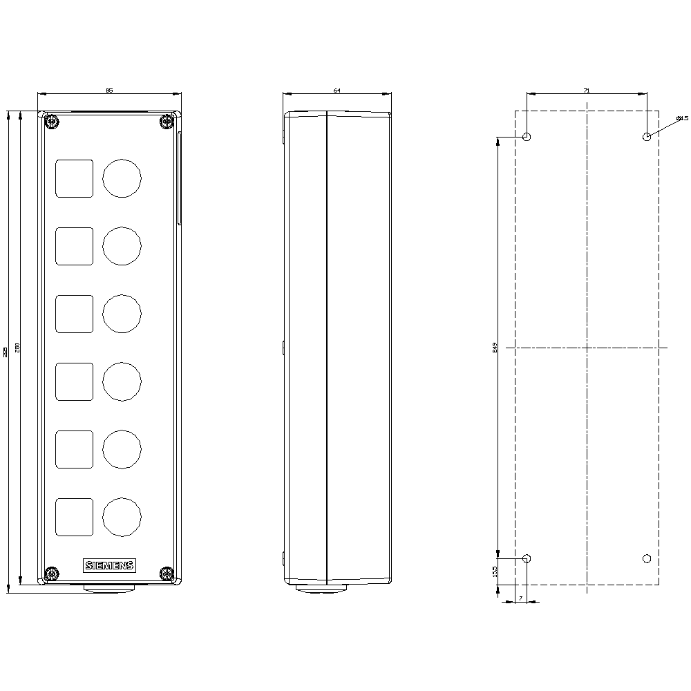 SIEMENS - SIE3SU18560AA000AB1 PULSANTIERA VUOTA GRIGIA 6 FORI