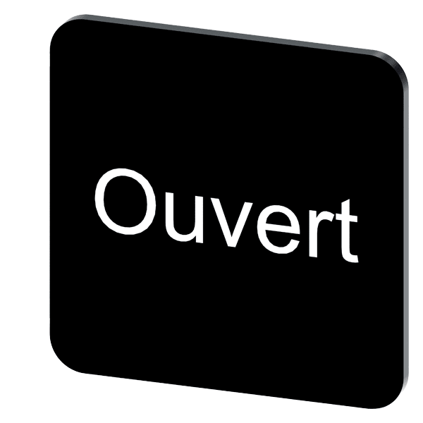 targhetta identificativa per lincollaggio su custodia, grandezza della targhetta 22x22 mm, targhetta nera, caratteri bianchi, con iscrizione: Ouvert Targhetta identificativa per la siglatura dei dispositivi di comando e segnalazione SIRIUS ACT. Siemens offre, sotto il nome commerciale SIRIUS ACT, un portfolio esclusivo di dispositivi di comando e segnalazione con omologazioni di prodotto per il mercato mondiale in tre moderne serie di design in robusto metallo puro e plastica pregiata.Linnovativo concetto di innesto a scatto semplifica talmente il montaggio che per eseguirlo basta una sola mano e non servono attrezzi speciali. Per i fori di montaggio sono sufficienti semplici fori non scanalati, essendo già integrata una protezione antirotazione al 100 %.Grazie al grado di protezione elevato i robusti apparecchi sono adatti allimpiego industriale e in ambiente esterno. È persino possibile la pulizia con getto ad alta pressione. Né polvere, né oli, né liscivia possono comprometterne il funzionamento affidabile.Oltre che con il cablaggio standard, gli apparecchi possono essere collegati al controllore anche tramite PROFINET, AS-Interface oppure IO-Link. Potete così ridurre il vostro onere di cablaggio, minimizzare le fonti di errore e ottenere maggiore flessibilità.Il configuratore online grafico supporta in modo confortevole la scelta e lordinazione di singoli apparecchi, pulsantiere e iscrizioni. È disponibile una documentazione completa (ad es. manuale, dati 3D, schema di collegamento). Ampia gamma di accessori opzionali (ad es. targhette identificative, per protezione e accesso, operatori, accessori per pulsantiere). SIRIUS ACT - Performance in Action nel comando e nella segnalazione. Semplici da montare, altamente performanti, semplicemente perfetti.