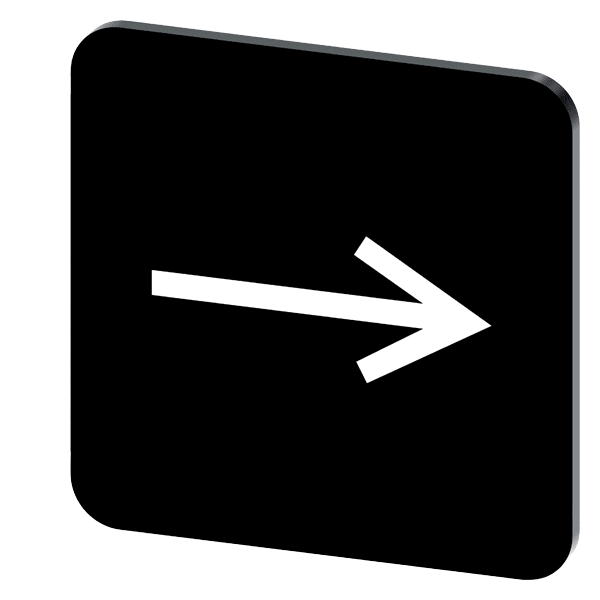 targhetta identificativa per lincollaggio su custodia, grandezza della targhetta 22x22 mm, targhetta nera, caratteri bianchi, con simbolo grafico direzione freccia a destra Targhetta identificativa per la siglatura dei dispositivi di comando e segnalazione SIRIUS ACT. Siemens offre, sotto il nome commerciale SIRIUS ACT, un portfolio esclusivo di dispositivi di comando e segnalazione con omologazioni di prodotto per il mercato mondiale in tre moderne serie di design in robusto metallo puro e plastica pregiata.Linnovativo concetto di innesto a scatto semplifica talmente il montaggio che per eseguirlo basta una sola mano e non servono attrezzi speciali. Per i fori di montaggio sono sufficienti semplici fori non scanalati, essendo già integrata una protezione antirotazione al 100 %.Grazie al grado di protezione elevato i robusti apparecchi sono adatti allimpiego industriale e in ambiente esterno. È persino possibile la pulizia con getto ad alta pressione. Né polvere, né oli, né liscivia possono comprometterne il funzionamento affidabile.Oltre che con il cablaggio standard, gli apparecchi possono essere collegati al controllore anche tramite PROFINET, AS-Interface oppure IO-Link. Potete così ridurre il vostro onere di cablaggio, minimizzare le fonti di erroree ottenere maggiore flessibilità.Il configuratore online grafico supporta in modo confortevole la scelta e lordinazione di singoli apparecchi, pulsantiere e iscrizioni. È disponibile una documentazione completa (ad es. manuale, dati 3D, schema di collegamento). Ampia gamma di accessori opzionali (ad es. targhette identificative, per protezione e accesso, operatori, accessori per pulsantiere). SIRIUS ACT - Performance in Action nel comando e nella segnalazione. Semplici da montare, altamente performanti, semplicemente perfetti.