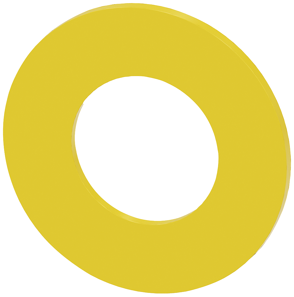 Rondella per arresto di emergenza, giallo, senza dicitura diametro esterno 45 mm, diametro interno 22,5 mm, spessore 2 mm Disco targhetta per ARRESTO DI EMERGENZA per la siglatura dei dispositivi di comando e segnalazione SIRIUS ACT. Siemens offre, sottoil nome commerciale SIRIUS ACT, un portfolio esclusivo di dispositivi di comando e segnalazione con omologazioni di prodotto per il mercato mondiale in tre moderne serie di design in robusto metallo puro e plastica pregiata.Linnovativo concetto di innesto a scatto semplifica talmente il montaggio che per eseguirlo basta una sola mano e non servono attrezzi speciali. Per i fori di montaggio sono sufficienti semplici fori non scanalati, essendo già integrata una protezione antirotazione al 100 %.Grazie al grado di protezione elevato i robusti apparecchi sono adatti allimpiego industriale e in ambiente esterno. È persino possibile la pulizia con getto ad alta pressione. Né polvere, né oli, né liscivia possono comprometterne il funzionamento affidabile.Oltreche con il cablaggio standard, gli apparecchi possono essere collegati al controllore anche tramite PROFINET, AS-Interface oppure IO-Link. Potete così ridurre il vostro onere di cablaggio, minimizzare le fonti di errore e ottenere maggiore flessibilità.Il configuratore online grafico supporta in modo confortevole la scelta e lordinazione di singoli apparecchi, pulsantiere e iscrizioni. È disponibile una documentazione completa (ad es. manuale, dati 3D, schema di collegamento). Ampia gamma di accessori opzionali (ad es. targhette identificative, per protezione e accesso, operatori, accessori per pulsantiere). SIRIUS ACT- Performance in Action nel comando e nella segnalazione. Semplici da montare, altamente performanti, semplicemente perfetti.