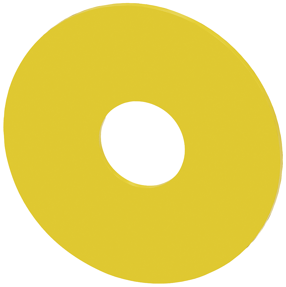 Rondella per arresto di emergenza, giallo, senza dicitura diametro esterno 75 mm, diametro interno 22,5 mm, spessore 2 mm Disco targhetta per ARRESTO DI EMERGENZA per la siglatura dei dispositivi di comando e segnalazione SIRIUS ACT. Siemens offre, sottoil nome commerciale SIRIUS ACT, un portfolio esclusivo di dispositivi di comando e segnalazione con omologazioni di prodotto per il mercato mondiale in tre moderne serie di design in robusto metallo puro e plastica pregiata.Linnovativo concetto di innesto a scatto semplifica talmente il montaggio che per eseguirlo basta una sola mano e non servono attrezzi speciali. Per i fori di montaggio sono sufficienti semplici fori non scanalati, essendo già integrata una protezione antirotazione al 100 %.Grazie al grado di protezione elevato i robusti apparecchi sono adatti allimpiego industriale e in ambiente esterno. È persino possibile la pulizia con getto ad alta pressione. Né polvere, né oli, né liscivia possono comprometterne il funzionamento affidabile.Oltreche con il cablaggio standard, gli apparecchi possono essere collegati al controllore anche tramite PROFINET, AS-Interface oppure IO-Link. Potete così ridurre il vostro onere di cablaggio, minimizzare le fonti di errore e ottenere maggiore flessibilità.Il configuratore online grafico supporta in modo confortevole la scelta e lordinazione di singoli apparecchi, pulsantiere e iscrizioni. È disponibile una documentazione completa (ad es. manuale, dati 3D, schema di collegamento). Ampia gamma di accessori opzionali (ad es. targhette identificative, per protezione e accesso, operatori, accessori per pulsantiere). SIRIUS ACT- Performance in Action nel comando e nella segnalazione. Semplici da montare, altamente performanti, semplicemente perfetti.