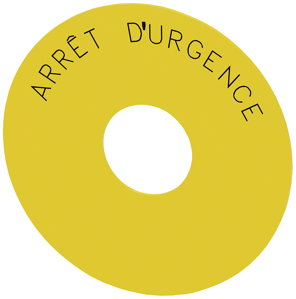 targhetta con dicitura rotonda, per pulsante a fungo di ARRESTO DI EMERGENZA, giallo, autoadesivo, diametro esterno 75 mm, diametro interno 23 mm, con iscrizione: ARRÊT DURGENCE Targhetta rotonda per ARRESTO DI EMERGENZA per la siglatura dei dispositivi di comando e segnalazione SIRIUS ACT. Siemens offre, sotto il nome commerciale SIRIUS ACT, un portfolio esclusivo di dispositivi di comando e segnalazione con omologazioni di prodotto per il mercato mondiale in tre moderne serie di design in robusto metallo puro e plastica pregiata.Linnovativo concetto di innesto a scatto semplifica talmente il montaggio che per eseguirlo basta una sola mano e non servono attrezzi speciali. Per i fori di montaggio sono sufficienti semplici fori non scanalati, essendo già integrata una protezione antirotazione al 100 %.Grazie al grado di protezione elevato i robusti apparecchi sono adatti allimpiego industriale e in ambiente esterno. È persino possibile la pulizia con getto ad alta pressione. Né polvere, né oli, né liscivia possono comprometterne il funzionamento affidabile.Oltre che con il cablaggio standard, gli apparecchi possono essere collegati al controllore anche tramite PROFINET, AS-Interface oppure IO-Link. Potete così ridurre il vostro onere di cablaggio, minimizzare le fonti di errore e ottenere maggiore flessibilità.Il configuratore online grafico supporta in modo confortevole la scelta e lordinazione di singoli apparecchi, pulsantiere e iscrizioni. È disponibile una documentazione completa (ad es. manuale, dati 3D, schema di collegamento). Ampia gamma di accessori opzionali (ad es. targhette identificative, per protezione e accesso, operatori, accessori per pulsantiere). SIRIUS ACT - Performance in Action nel comando e nella segnalazione. Semplici da montare, altamente performanti, semplicemente perfetti.