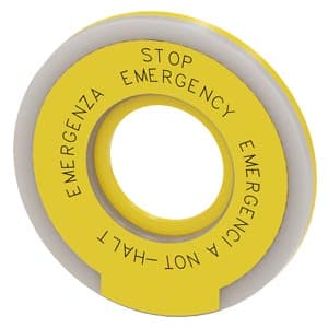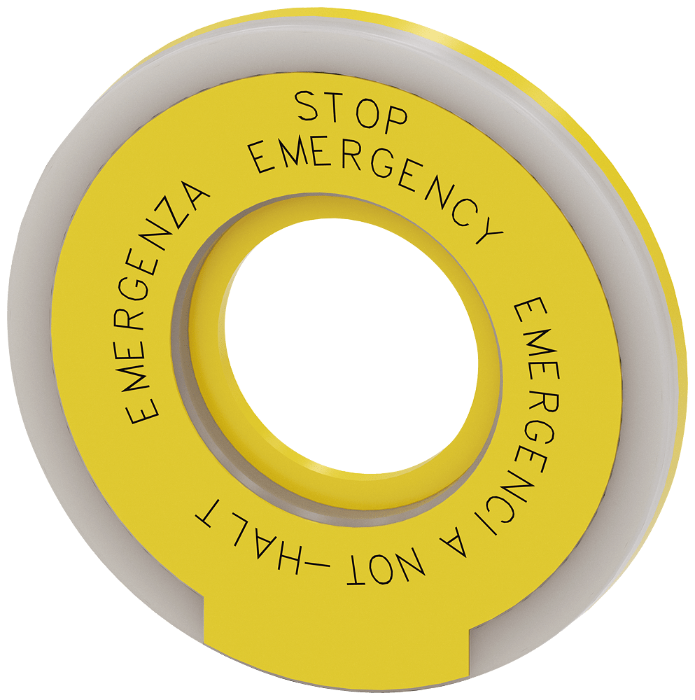 disco targhetta rotondo per pulsante a fungo di ARRESTO DI EMERGENZA, giallo, luminoso, spessore 5 mm, diametro esterno 60 mm, diametro interno 23 mm, con iscrizione: ARRESTO DI EMERGENZA, in 4 lingue: de,en,it,es Targhetta rotonda per ARRESTO DI EMERGENZA per la siglatura dei dispositivi di comando e segnalazione SIRIUS ACT. Siemens offre, sotto il nome commerciale SIRIUS ACT, un portfolio esclusivo di dispositivi di comando e segnalazione con omologazioni di prodotto per il mercato mondiale in tre moderne serie di design in robusto metallo puro e plastica pregiata.Linnovativo concetto di innesto a scatto semplifica talmente il montaggio che per eseguirlo basta una sola mano e non servono attrezzi speciali. Per i fori di montaggio sono sufficienti semplici fori non scanalati, essendo già integrata una protezione antirotazione al 100 %.Grazie al grado di protezione elevato i robusti apparecchi sono adatti allimpiego industriale e in ambiente esterno. È persino possibile la pulizia con getto ad alta pressione. Né polvere, né oli, né liscivia possono comprometterne il funzionamento affidabile.Oltre che con il cablaggio standard, gli apparecchi possono essere collegati al controllore anche tramite PROFINET, AS-Interface oppure IO-Link. Potete così ridurre il vostro onere di cablaggio, minimizzare le fonti di errore e ottenere maggiore flessibilità.Il configuratore online grafico supporta in modo confortevole la scelta e lordinazione di singoli apparecchi, pulsantiere e iscrizioni. È disponibile una documentazione completa (ad es. manuale, dati 3D, schema di collegamento). Ampia gamma di accessori opzionali (ad es. targhette identificative, per protezione e accesso, operatori, accessori per pulsantiere). SIRIUS ACT - Performance in Action nel comando e nellasegnalazione. Semplici da montare, altamente performanti, semplicemente perfetti.