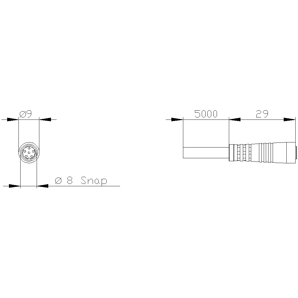 accoppiamento con cavo di collegamento lungo 5 m, con 8 mm attacco a scatto, per connettore a 6 poli, per interruttore magnetico 3SE66 Safety is a SIRIUS business.