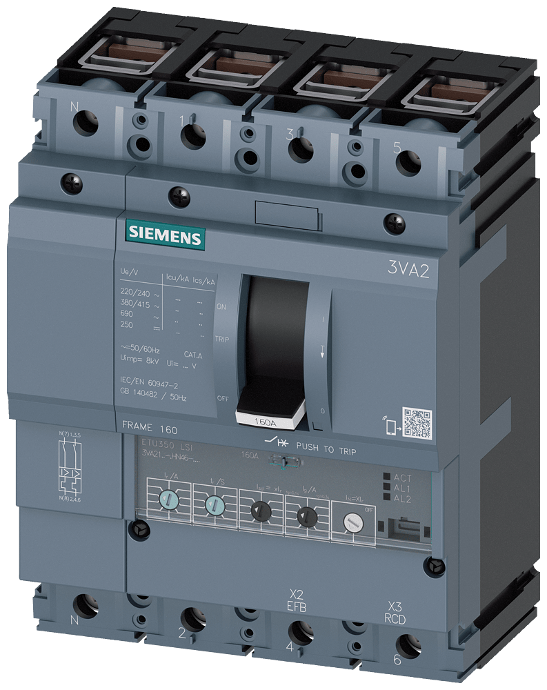 SIEMENS - SIE3VA21166HN460AA0 INT.AUT.3VA 160A 4P 85KA ETU3 LSI B/T