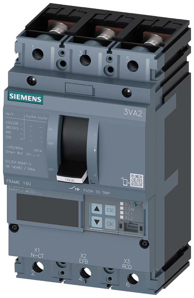 SIEMENS - SIE3VA21630MQ320AA0 INT.AUT.3VA 63A 3P 200KA ETU8M LSIG L/T