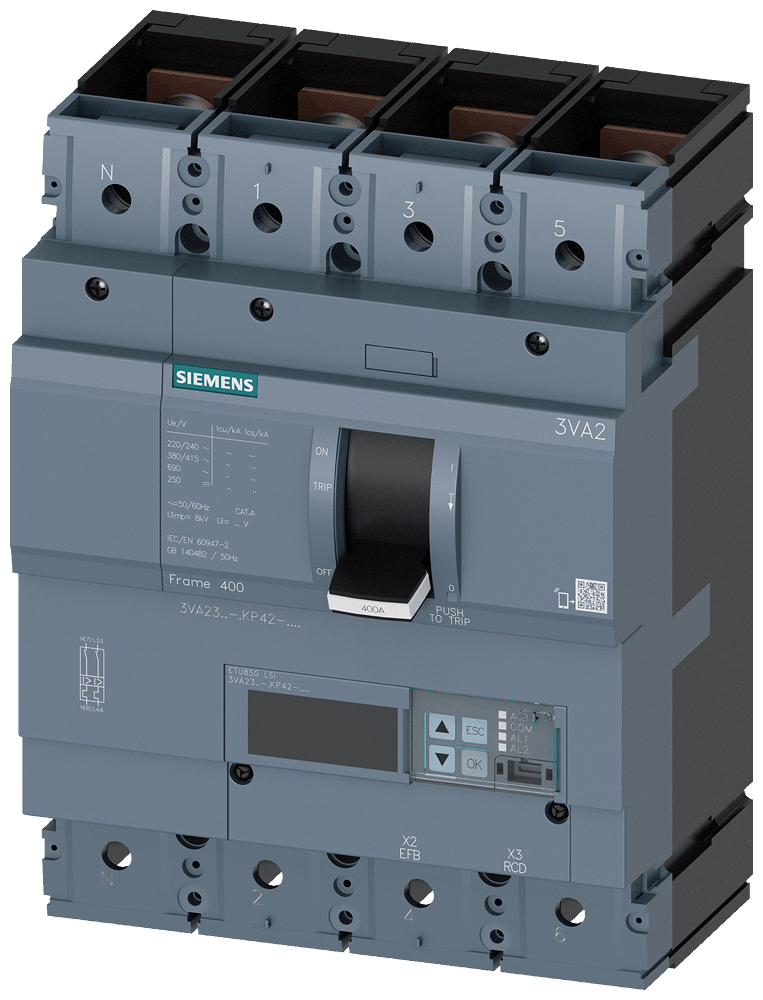 SIEMENS - SIE3VA23407KP420AA0 INT.AUT.3VA 400A 4P 110KA ETU8 LSI L/T