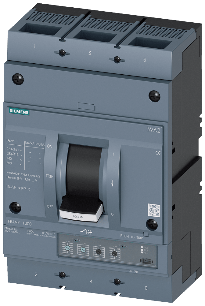 SIEMENS - SIE3VA25105HM320AA0 INT.AUT.3VA 1000A 3P 55KA ETU3 LIG L/T