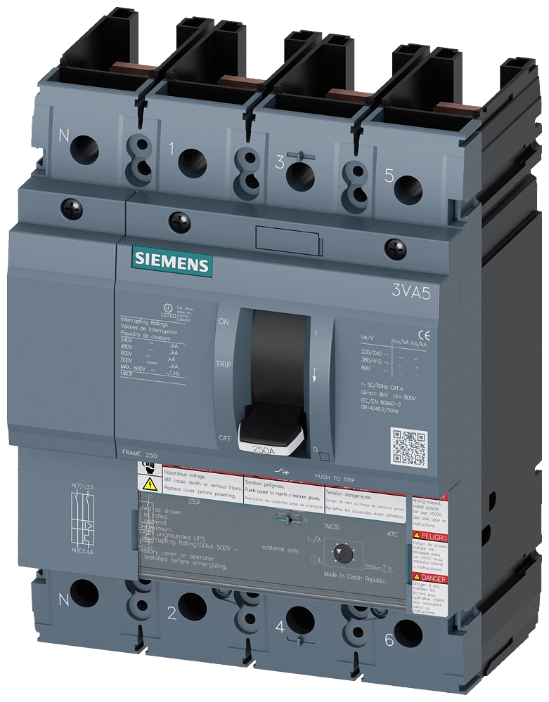 SIEMENS - SIE3VA52175GF410AA0 MCCB UL FS250 175A 4P 35KA TM ATAM