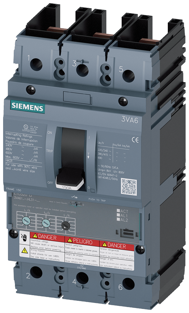 SIEMENS - SIE3VA61105HL312AA0 MCCB UL BG150 100A 3P 35KA ETU3 LI 100%