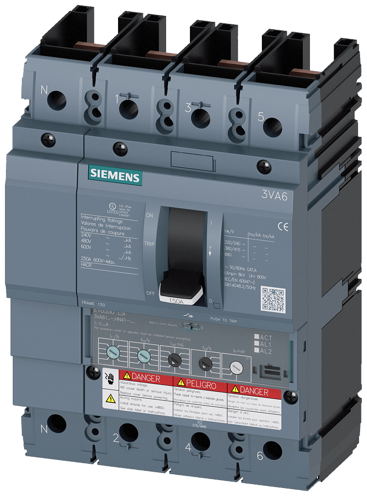 SIEMENS - SIE3VA61156HN410AA0 MCCB UL BG150 150A 4P 65KA ETU3 LSI