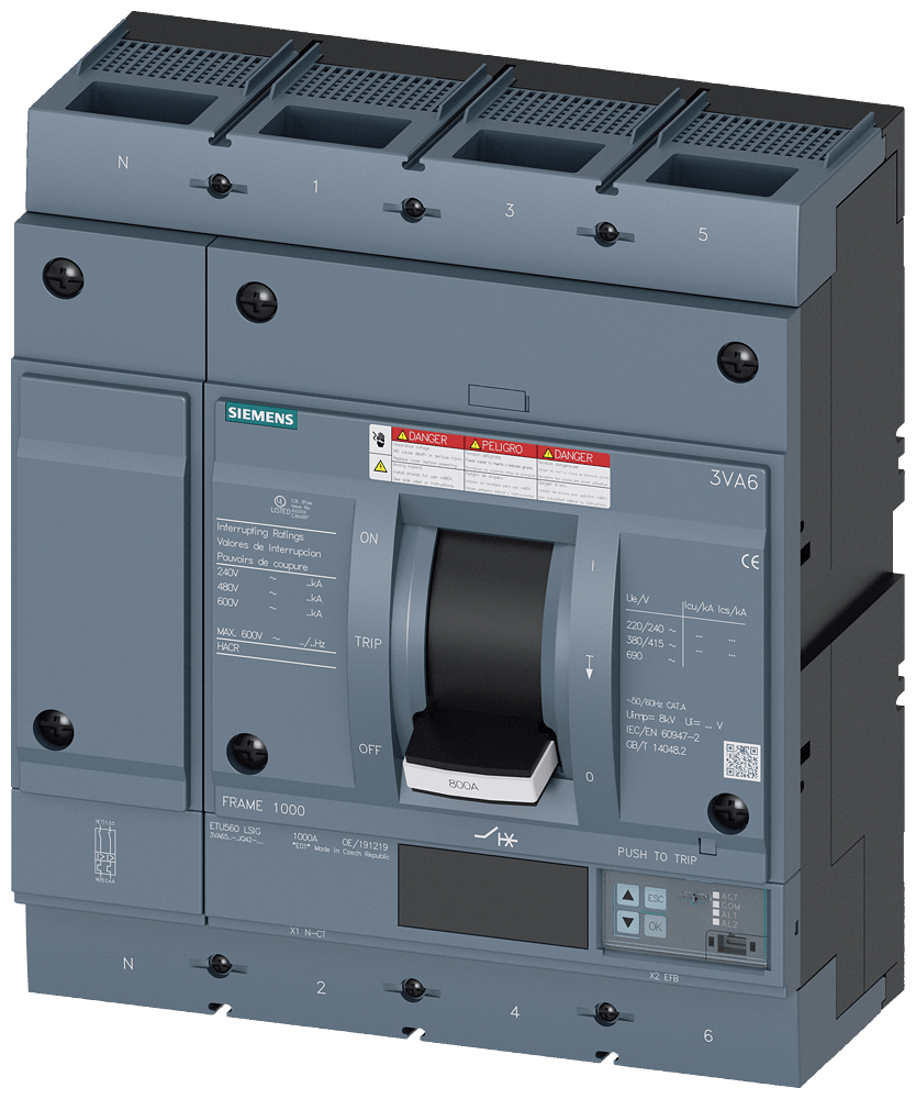 SIEMENS - SIE3VA65806JQ420AA0 MCCB UL FS800 800A 4P 65KA ETU5 LSIG