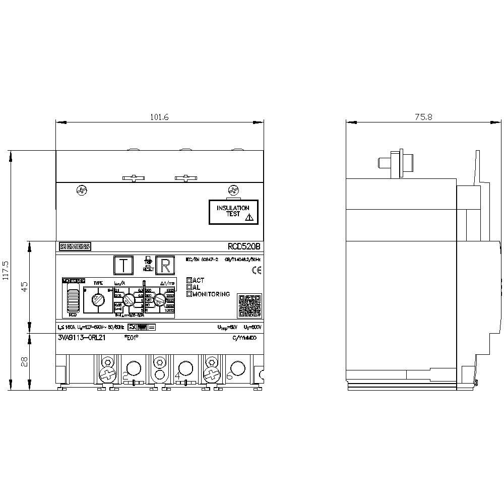 SIEMENS - SIE3VA91130RL21 MODULO RCD520B X 3VA11 3P I=160A U=480V