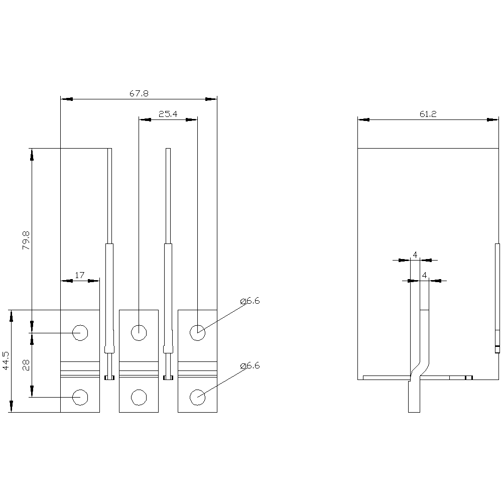 prolungamento attacco a sbarra sul lato frontale 3 pezzi accessori per: 3VA10/11 Interruttori automatici scatolati SENTRON 3VA - un sistema. Per tutte le applicazioni.