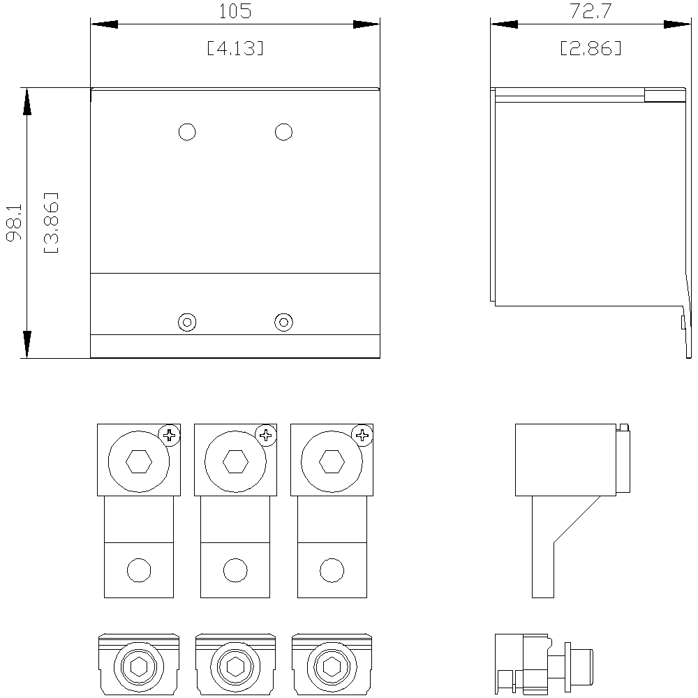 morsetto di collegamento per conduttore circolare TA2.2 2 AWG ... 350 kcmil grande con presa di tensione per conduttore ausiliario 3 pezzi accessori per: 3VA61/62 Interruttori automatici scatolati SENTRON 3VA - un sistema. Per tutte le applicazioni.