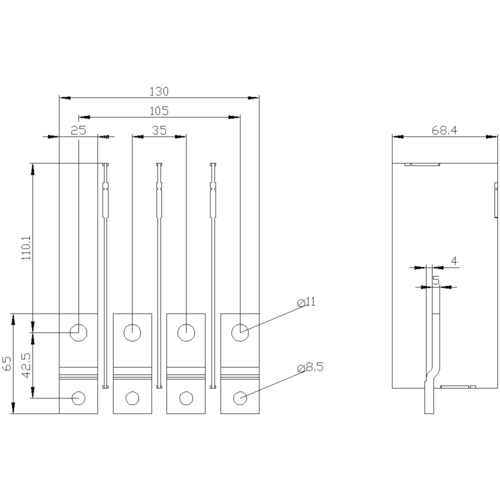 prolungamento attacco a sbarra sul lato frontale 4 pezzi accessori per: 3VA20/21/22 Interruttori automatici scatolati SENTRON 3VA - un sistema. Per tutte le applicazioni.