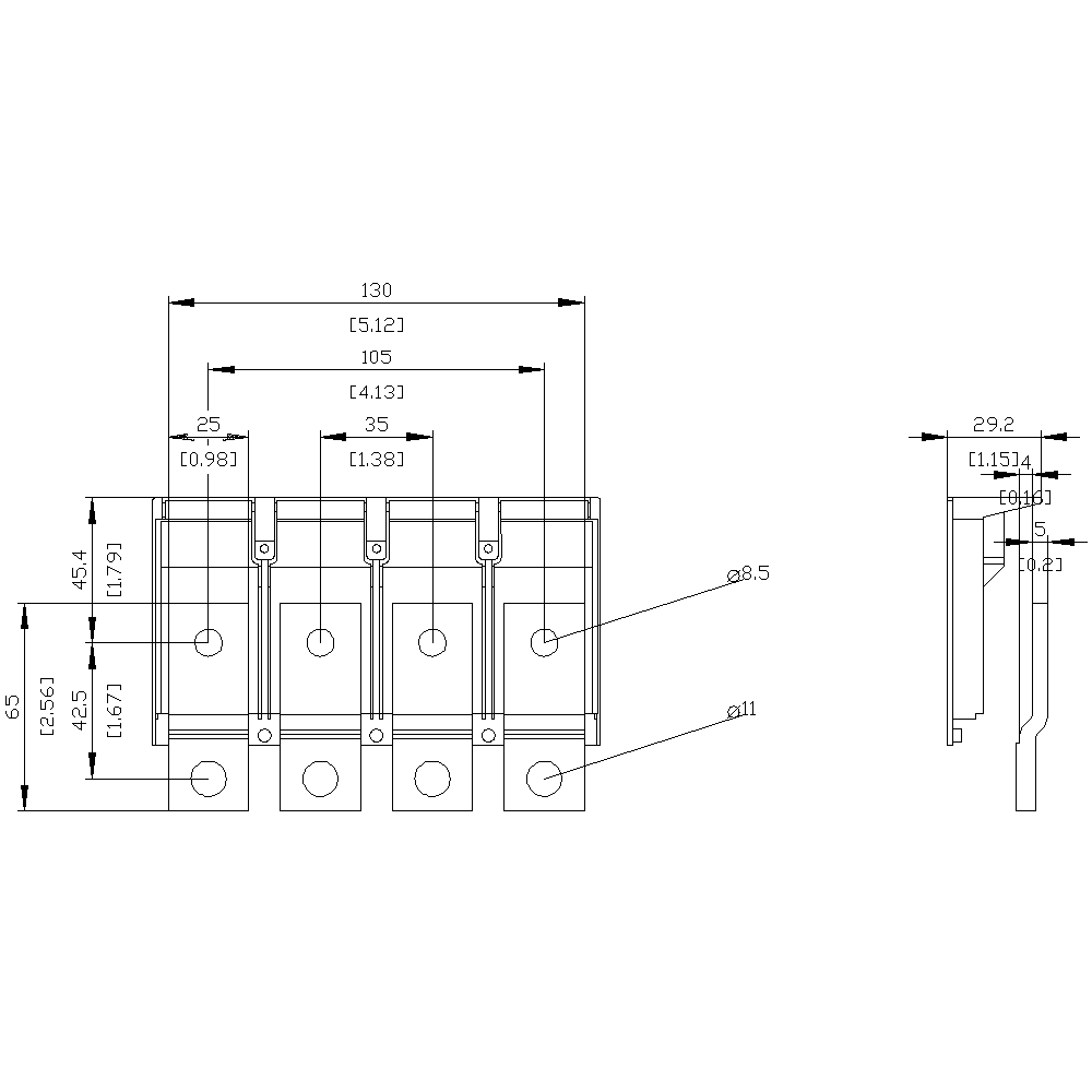 SIEMENS - SIE3VA92740QB00 FRONT BUS CONN.S 4 PCS X 3VA52/61/2