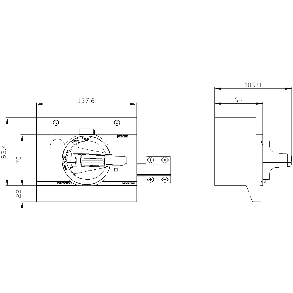 comando rotativo frontale OFF di emergenza con bloccoporta IEC IP30/40 accessori per: 3VA13/14; 3VA23/24 Interruttori automatici scatolati SENTRON 3VA - un sistema. Per tutte le applicazioni.