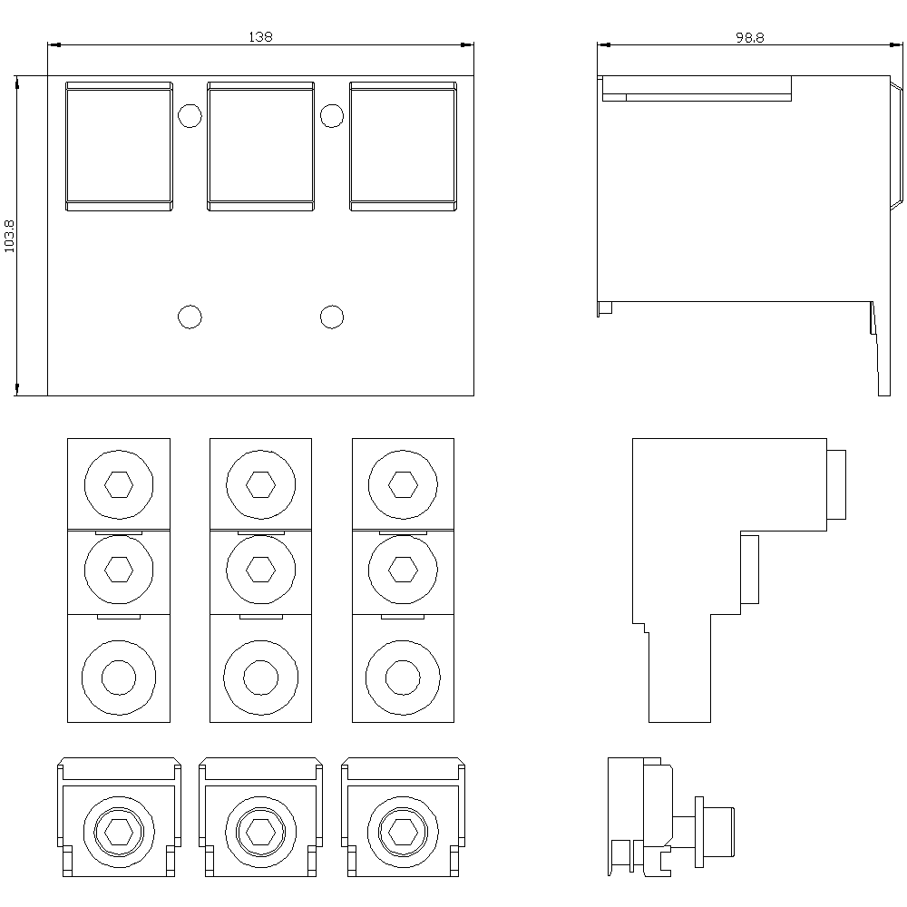 morsetto di collegamento per conduttore circolare TA2.4 2 x 2/0…600 kcmil per 2 cavi 3 pezzi accessori per: 3VA53/54; 3VA63/64 Interruttori automatici scatolati SENTRON 3VA - un sistema. Per tutte le applicazioni.