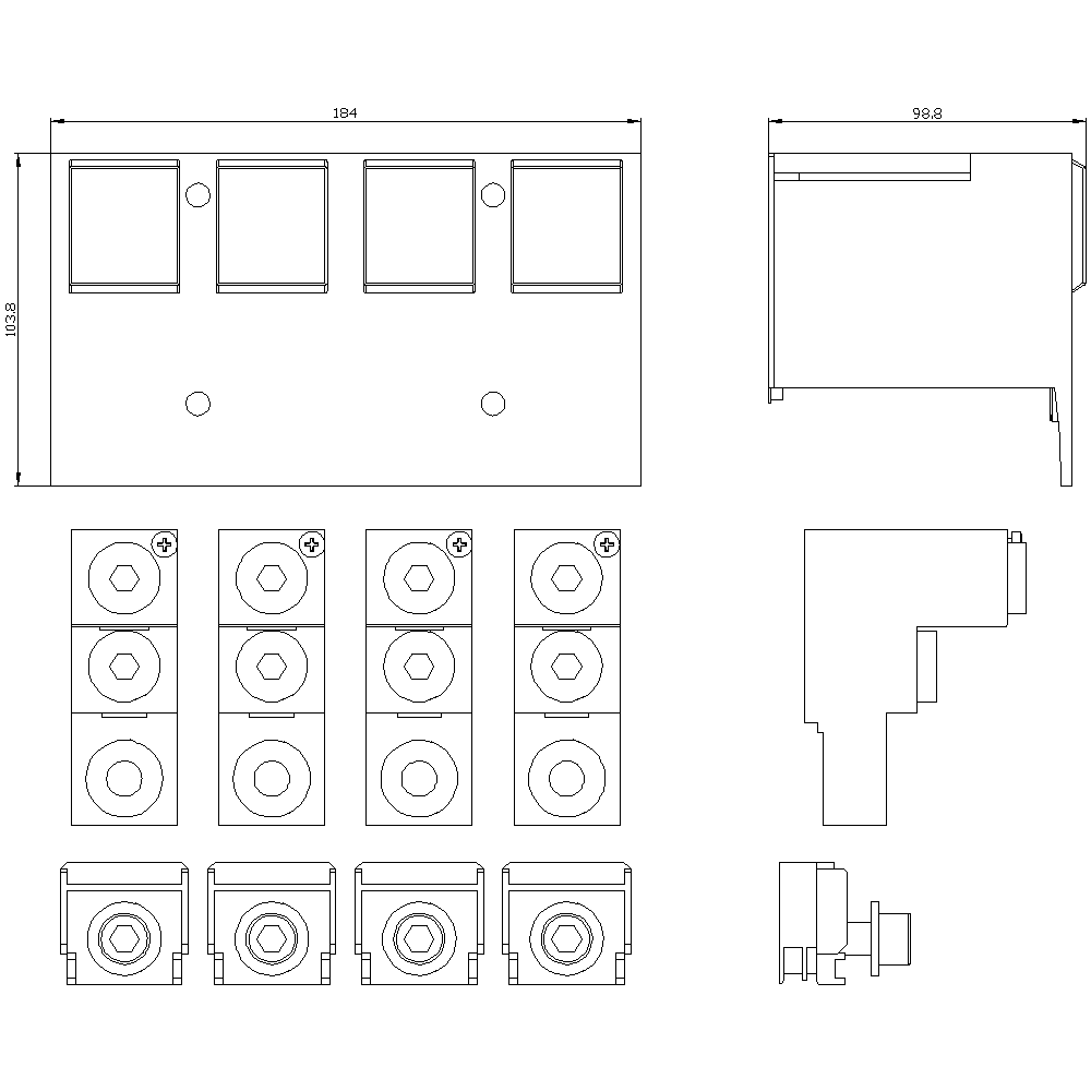 morsetto di collegamento per conduttore circolare TA2.4 2 x 2/0…600 kcmil per 2 cavi con presa di tensione per conduttore ausiliario 4 pezzi accessori per: 3VA53/54; 3VA63/64 Interruttori automatici scatolati SENTRON 3VA - un sistema. Per tutte le applicazioni.
