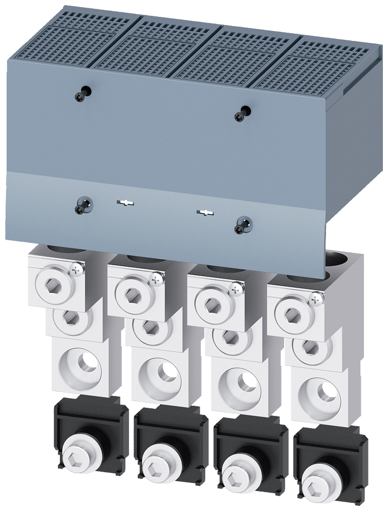 morsetto di collegamento per conduttore circolare TA2.4 2 x 70…300 mm² per 2 cavi con presa di tensione per conduttore ausiliario 4 pezzi accessori per: unità rimovibile/unità estraibile 3VA13/14; 3VA23/24 Interruttori automatici scatolati SENTRON 3VA - un sistema. Per tutte le applicazioni.