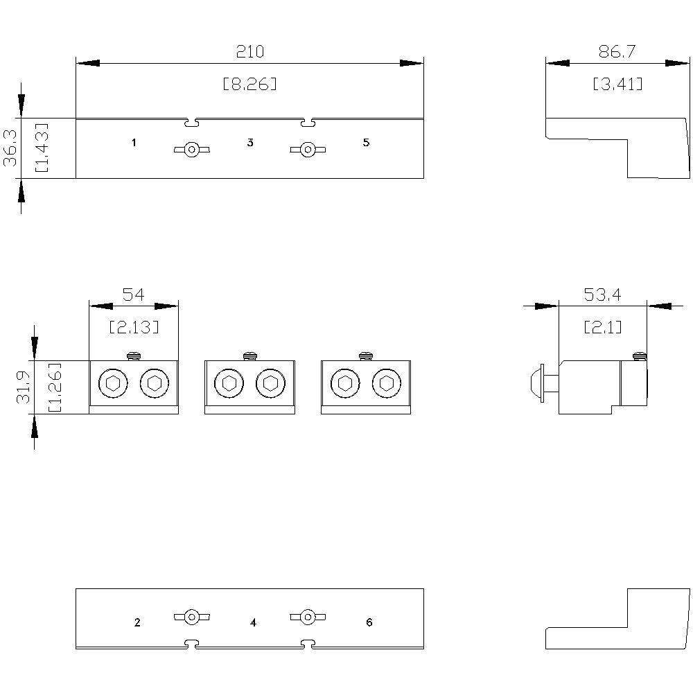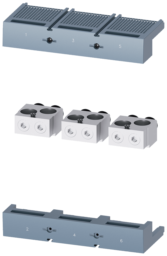 morsetto di collegamento per conduttore circolare TA3.1 2 x 120…300 mm² per 2 cavi con presa di tensione per conduttore ausiliario 3 pezzi accessori per: 3VA15; 3VA25 Interruttori automatici scatolati SENTRON 3VA - un sistema. Per tutte le applicazioni.