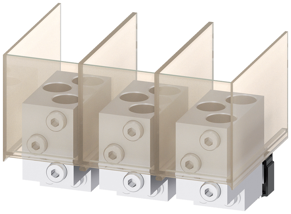 morsetto di collegamento per conduttore circolare TA6.1 3 x 500...750 kcmil per 3 cavi; 3 pz. accessori per: interruttori automatici a 3 poli 3VA57; 3VA67 Interruttori automatici scatolati SENTRON 3VA - un sistema. Per tutte le applicazioni.