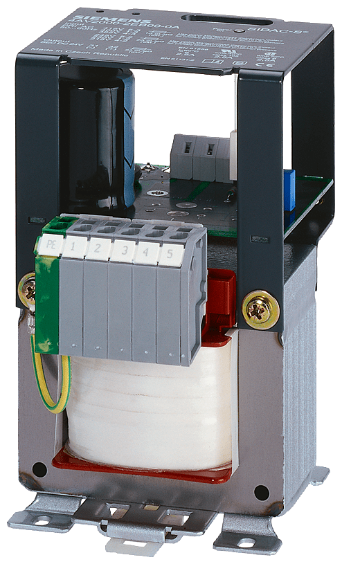 alimentazione; fasi:1; Pn(kW):0,06; Upri(V):400-230+/-15; Usec(V DC):24; Isec(A DC):2,5/3 (60/40 CEL); F(Hz): 50 ... 60; gruppo di collegamento/avvolgimento di schermatura: II0 /0; classe di protezione: I; TA/cl. di isolam:60 /B; W(%):5; IP00; collegamento: morsetti a vite; montaggio: con viti / guida DIN; EN 61558-2-6, EN 61131-2 >trasformatore di sicurezza< Gli alimentatori 4AV forniscono una tensione continua non regolata DC 24 V sulla base di trasformatori di sicurezza monofase o trifase con raddrizzatori collegati a valle e il filtraggio con condensatori secondo la norma EN 61131-2.
