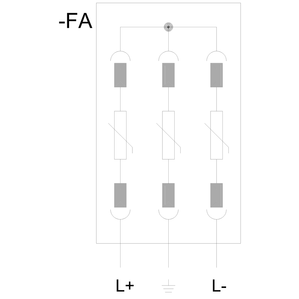 scaricatore di sovratensioni T2, Uc DC 1000 V, Imax 40kA resistenza a cortocircuito 2000A, collegamento 2+V, per sistemi PV isolati e messi a terra