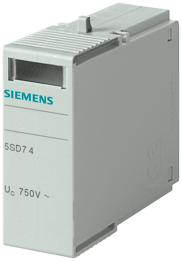 cartuccia estraibile tipo 2, Uc AC 750V, per 5SD7481-1 e 5SD7483-5 Apparecchi di protezione da sovratensione in impianti elettrici. Gli apparecchi di protezione da sovratensioni Siemens si contraddistinguono soprattutto per le seguenti caratteristiche: 1. Protezione efficace dellinvestimento e dellimpianto da fulmini e sovratensioni. 2. La protezione da fulmini e sovratensioni adatta per ogni caso applicativo (tipo da 1 a 3). 3. Contatto di segnalazione a distanza per lupload esterno della visualizzazione di stato. 4. Sicurezza affidabile durante linstallazione grazie alla protezione avvolgente e alla protezione contro i contatti accidentali come standard di serie. 5. Rimozione senza attrezzi dalla guida DIN. 6. Visualizzazione errore chiaramente visibile. 7. Il codice DataMatrix sul frontale dellapparecchio fornisce tutte le informazioni sulla protezione da fulmini e sovratensioni in modo rapido e semplice. 8. Tecnica ottimale per la vostra sicurezza - solo da Siemens.
