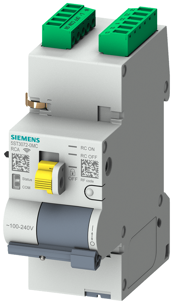 azionamento a distanza 5ST3 COM con comunicazione e ARD; AC 100...240V; 2UM; per interruttore automatico, interruttore differenziale, blocchi differenziali, int. magn./diff., interruttore ON/OFF, osservare le omologazioni nazionali! Lista dei paesi: vedere certificati Comando a distanza 5ST3 COM, ARD SENTRON 5ST3 COM come componente aggiuntivo con funzione di comunicazione per dispositivi differenziali e interruttori magnetotermici. Questi componenti aggiuntivi sono universalmente montabili. Sono facili e comodi da montare e collegare. Grazie alla protezione contro i contatti accidentali di serie, la sicurezza è garantita in modo affidabile durante linstallazione. Tecnica ottimale per la vostra sicurezza - solo da Siemens.