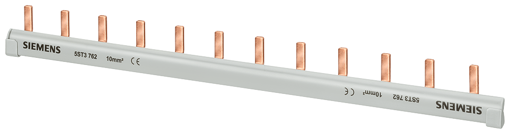 sbarra di collegamento a punte, monofase 10mm2, 56 punte, isolamento grigio tagliabile, senza calotte terminali sbarra di collegamento a punte SENTRON 5ST3 come componente aggiuntivo per dispositivi differenziali e interruttori magnetotermici. Questi componenti aggiuntivi sono universalmente montabili. Sono facili e comodi da montare e collegare. Grazie alla protezione contro i contatti accidentali di serie, la sicurezza è garantita in modo affidabile durante linstallazione. Tecnica ottimale per la vostra sicurezza - solo da Siemens.