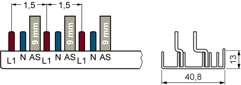 sbarra di collegamento a punte compatta 10 mm2 collegamento 1p/N apparecchio compatto 1 UM + blocchetto di contatti ausiliari 0,5 UM protezione contro i contatti accidentali tranciabile a 1m sbarra di collegamento a punte SENTRON 5ST3 come componente aggiuntivo per dispositivi differenziali e interruttori magnetotermici. Questi componenti aggiuntivi sono universalmente montabili. Sono facili e comodi da montare e collegare. Grazie alla protezione contro i contatti accidentali di serie, la sicurezza è garantita in modo affidabile durante linstallazione. Tecnica ottimale per la vostra sicurezza - solo da Siemens.