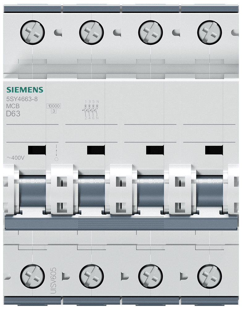 SIEMENS - SIE5SY46638 INT MT 3P+N D63 ICN 10KA ICU 15KA