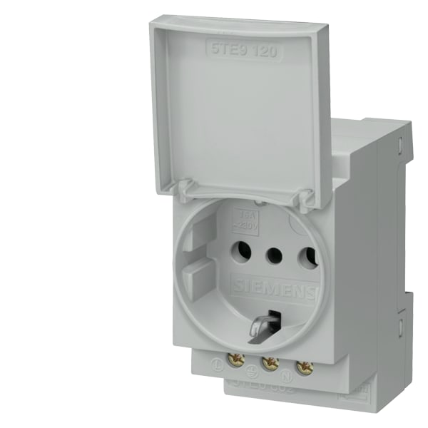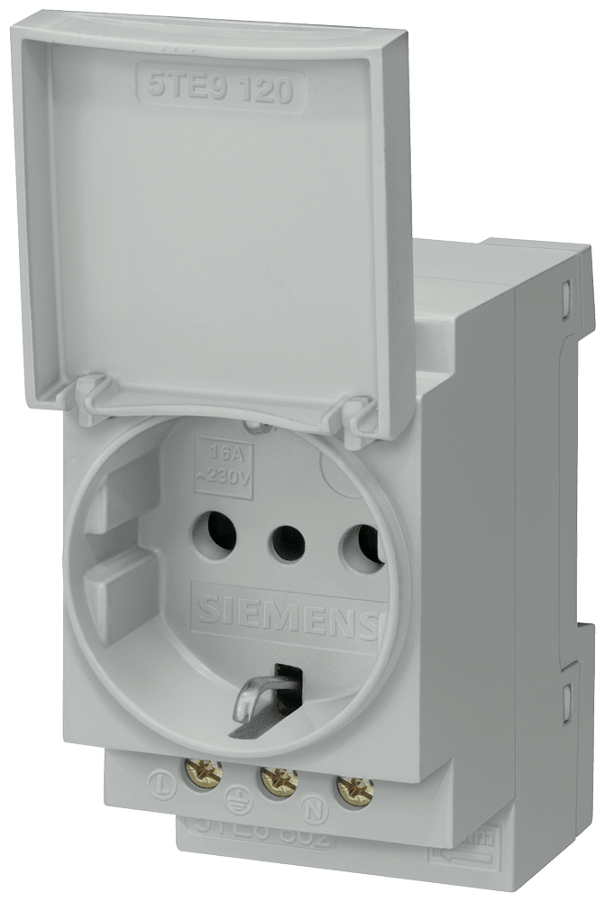 presa di corrente 16 A con coperchio, senza omologazione secondo DIN VDE 0620 e CEI 23-5 per montaggio in quadri di distribuzione esecuzione Italia zoccolo SENTRON 5TE6 per lalimentazione di apparecchi elettrici in quadri elettrici. Facilità di montaggioe smontaggio sulla guida DIN. Ideale per il collegamento di utilizzatori elettrici per lavori nel quadro di distribuzione o nelle immediate vicinanze. Tecnica ottimale per la vostra sicurezza - solo da Siemens.