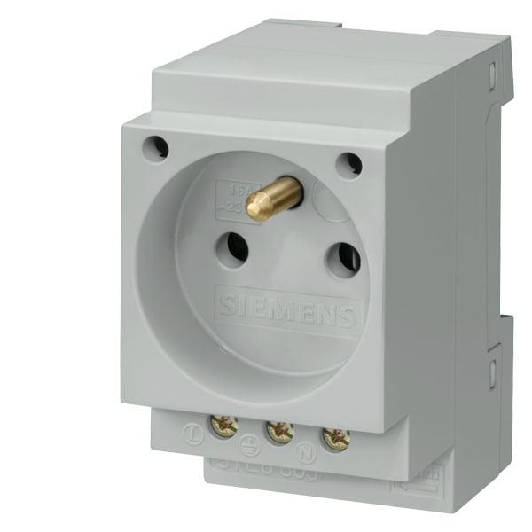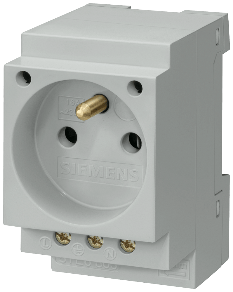presa di corrente 16 A con spina di messa a terra secondo CEE 7 per montaggio in quadri di distribuzione zoccolo SENTRON 5TE6 per lalimentazione di apparecchi elettrici in quadri elettrici. Facilità di montaggio e smontaggio sulla guida DIN. Ideale per il collegamento di utilizzatori elettrici per lavori nel quadro di distribuzione o nelle immediate vicinanze. Tecnica ottimale per la vostra sicurezza - solo da Siemens.