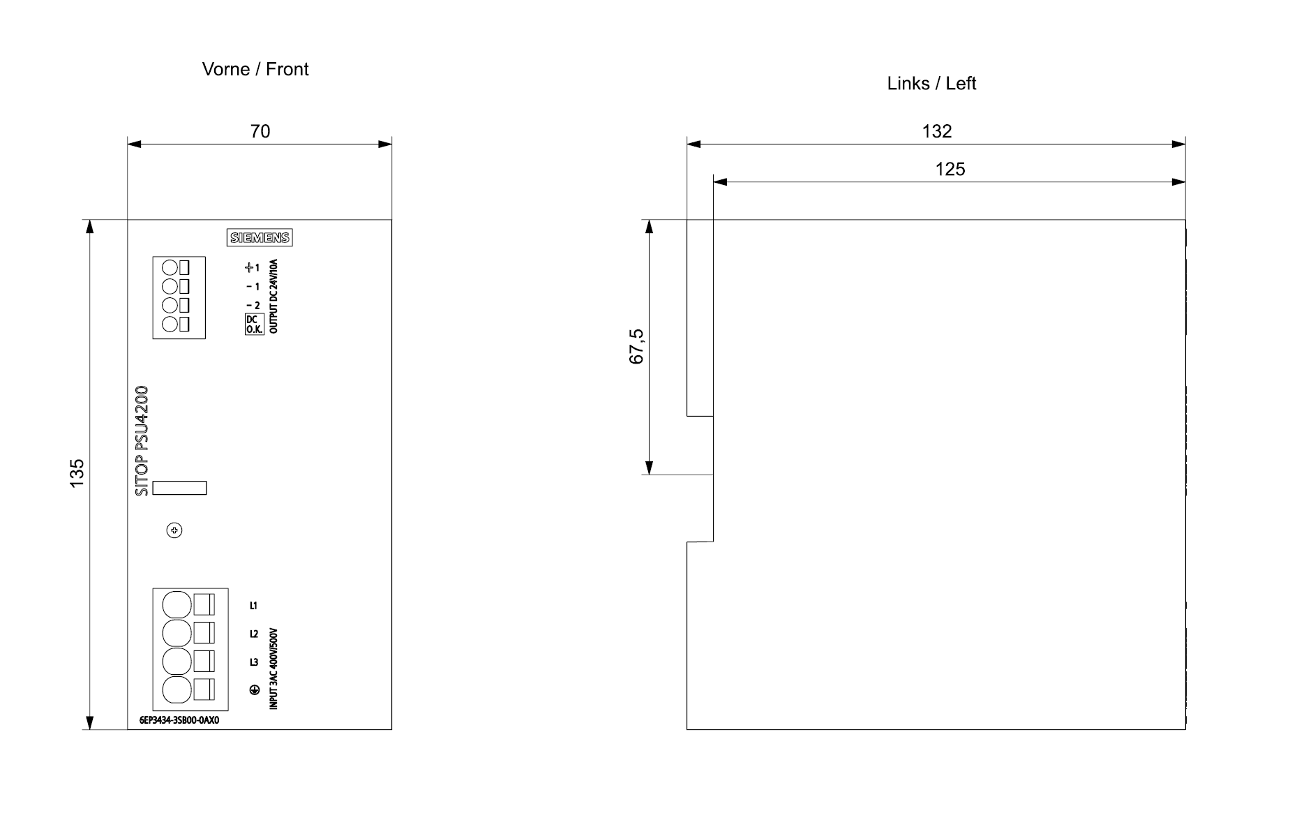 SITOP PSU4200 3AC 24 V/10 A alimentatore stabilizzato PSU4200 ingresso: AC 400/500 V uscita: DC 24 V/10 A Gli alimentatori trifase SITOP PSU4200 sono concepiti per le esigenze base nel campo industriale ed offrono tutte le funzioni più importanti ad un prezzo vantaggioso. Lingresso wide-range consente il collegamento alle più diverse reti di alimentazione trifase. Grazie alla larghezza costruttiva ridotta, gli alimentatori da rete richiedono poco spazio sulla guida DIN e lottimo rendimento riduce lo sviluppo di calore dissipato nel quadro elettrico. Per un ulteriore aumento della disponibilità di 24 V, gli alimentatori da rete SITOP PSU4200 possono essere combinati con moduli buffer, di ridondanza e selettivi. Indipendentemente dal settore o dallesigenza, Siemens offre alimentatori affidabili ed efficienti per ogni impianto.