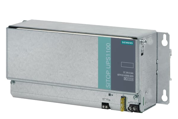 SITOP UPS1100 modulo batteria con batterie al piombo sigillate batteria al piombo puro per moduli SITOP DC-UPS DC 24 V 2,5 Ah I moduli batteria esenti da manutenzione SITOP UPS1100 con batterie al piombo puro, più insensibili alle temperature, sono un importante componente dei sistemi DC-USV. In combinazione con un alimentatore a 24 V e un modulo UPS1600 consentono di bufferizzare cadute di rete anche dellordine di ore. La gestione intelligente delle batterie dellUPS1600 ricarica lUPS1100 con la caratteristica di carica ottimale a temperatura controllata e sorveglia lo stato via Energy Storage Link (dati di funzionamento e informazioni di diagnostica) dei moduli batteria collegati. Per ottenere tempi di bufferizzazione più lunghi è possibile collegare fino a sei moduli batteria paralleli. Il fissaggio si esegue su guida profilata standard o con il montaggio direttamente a parete.