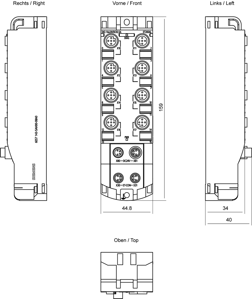 SIEMENS - SIE6ES71435AH000BA0 ET 200AL, DIQ 16X24VDC/0,5A, 8XM12