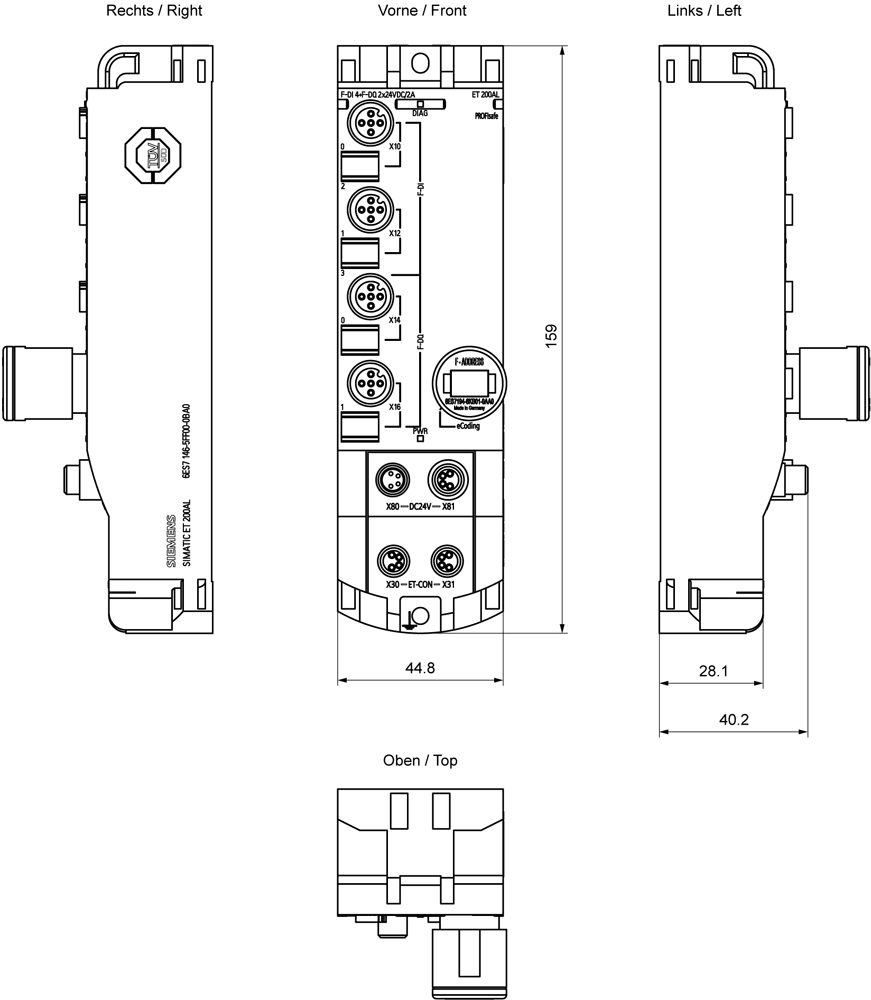 SIEMENS - SIE6ES71465FF000BA0 ET 200AL, F-DI 4+F-DQ 2X24VDC/2A, 4XM12