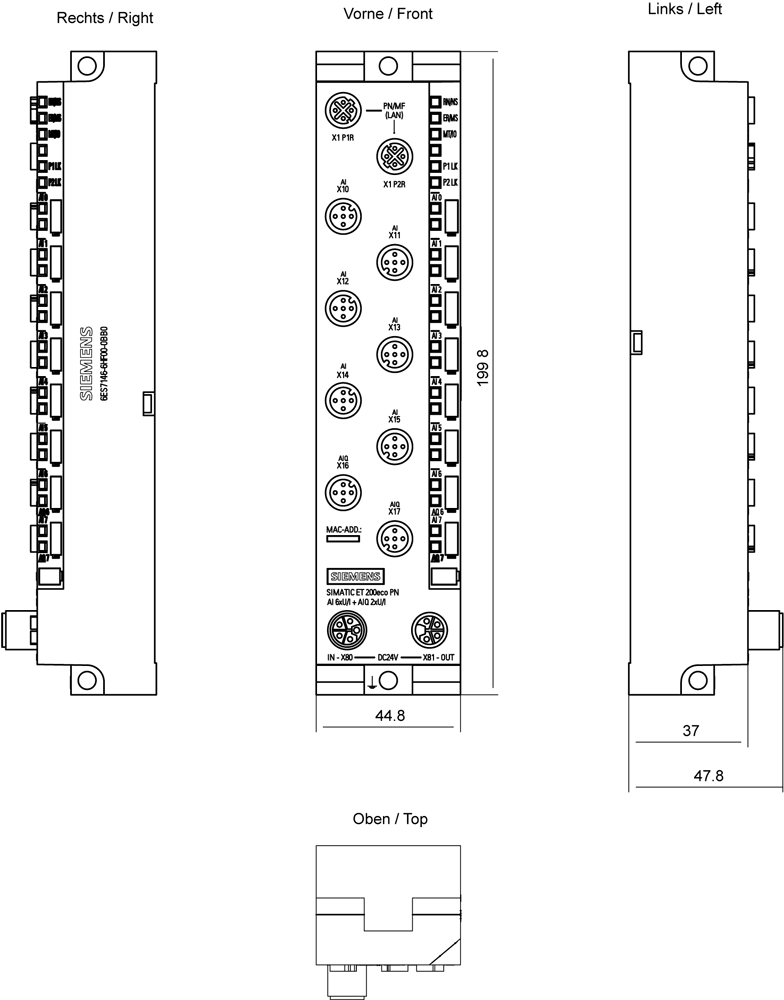 SIEMENS - SIE6ES71466HF000BB0 ET 200ECO PN, AI 6XU/I +AIQ 2XU/I, M12-L