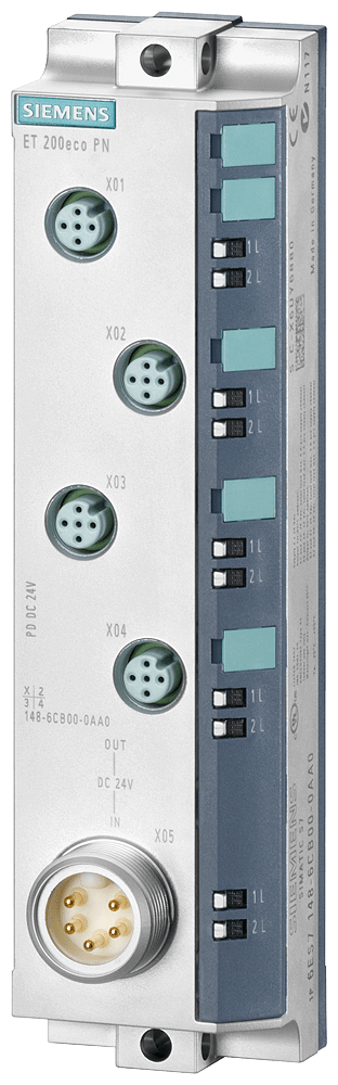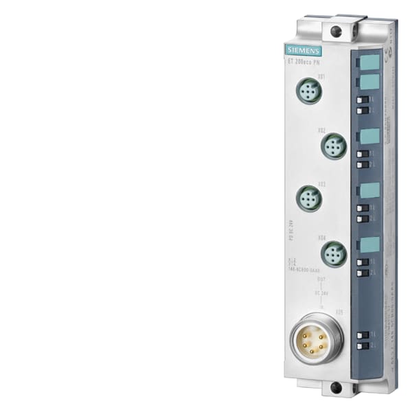 SIMATIC DP, ET 200ECO PN, distributore di tensione PD DC 24V; 1x 7/8, 4xM12, grado di protezione IP67 SIMATIC ET 200eco PN è una periferia a blocco compatta con collegamento PROFINET e grado di protezione IP65/67 e quindi una soluzione salvaspazio e a prova di futuro, che definisce nuovi standard di mercato e richiede allo stesso tempo un onere di montaggio molto basso. È possibile installare e mettere in servizio la periferia a blocco in modo semplice e flessibile in qualsiasi posizione. Grazie alla forma costruttiva intelligente, si può effettuare il montaggio sul posto direttamente sulla macchina o sulla linea di montaggio. La custodia molto robusta in zinco pressofuso assicura la protezione ideale in condizioni ambientali estremamente gravose e ne consente limpiego a temperature da -40° a +60°. Un ulteriore vantaggio del sistema è la sua elevatissima resistenza a vibrazioni, polvere, olio e umidità. Con il SIMATIC ET 200eco PN è disponibile una soluzione completa innovativa e a prova di futuro, che grazie allo switch a 2 porte integrato è configurabile in modo flessibile e implementabile in topologie lineari allinterno di un impianto. I connettori Power M12 L-coded semplificano il sistema di alimentazione, consentendo una caricabilità in corrente piùelevata e quindi lunghezze di cavo molto maggiori nel campo, senza necessità di cavi di alimentazione aggiuntivi. Mediante tecnologie chiave, ulteriormente sviluppate con i prodotti ET 200, Siemens vi assicura soluzioni innovative e a prova di futuro, che vi aiutano ad affermarvi in nuove aree di business. Il portfolio comprende, oltre ai moduli di ingressie uscite digitali e analogici in diversi tipi di esecuzione (incl. moduli per misura di corrente, tensione, temperatura e resistenza), anche master IO-Link e un modulo fail-safe per il collegamento di sensori e attuatori fino a SIL 3 / PLe. Alloccorrenza possono essere disinserite anche le uscite dei moduli standard in applicazioni fail-safe fino a SIL 2.