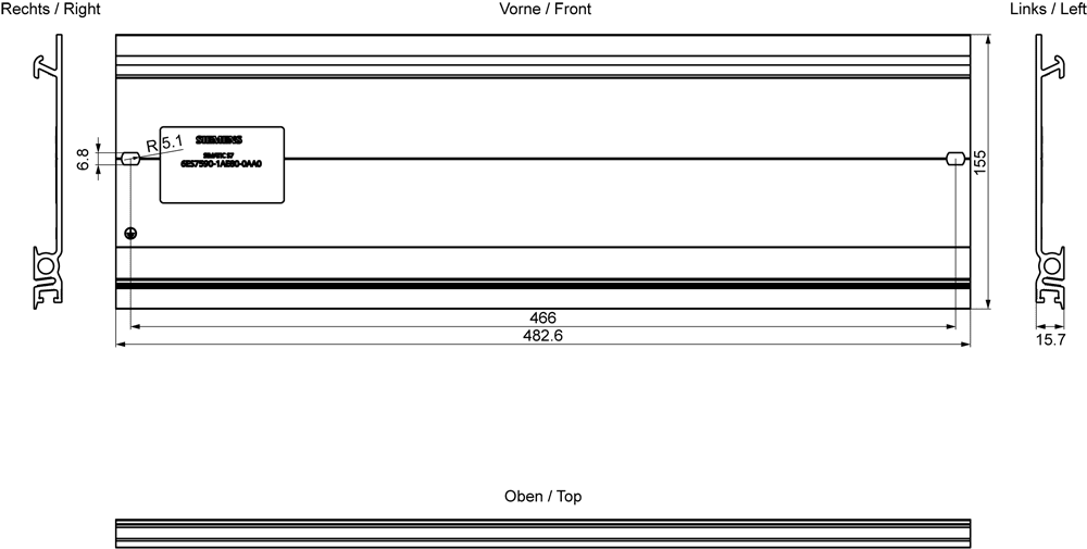 SIEMENS - SIE6ES75901AE800AA0 MOUNTING RAIL 482MM (19)