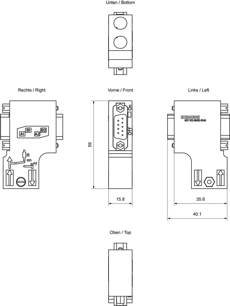SIMATIC DP, connettore per PROFIBUS fino a 12 Mbit/s uscita cavo a 90°, tecnica a perforazione di isolante Fast-Connect, con presa PG 15,8x 59x 35,6mm (LxAxP) Zubehör für SIMATIC DP