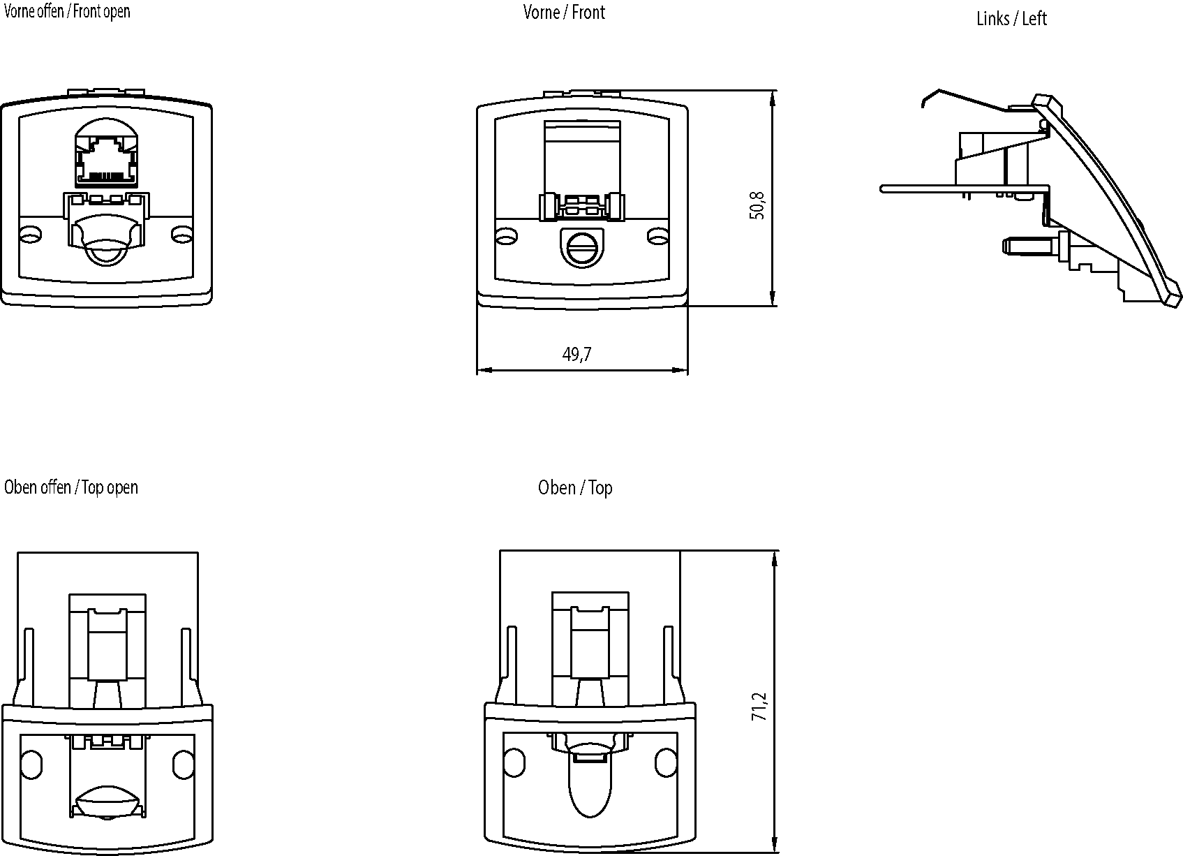 inserto Industrial Ethernet 1GE per modulo base Modular Outlet, inserto rimovibile con 1 x interfaccia RJ45 1000 Mbit 1 confezione=4 pezzi. SIMATIC NETInserto 1 GE per Modular Outlet
